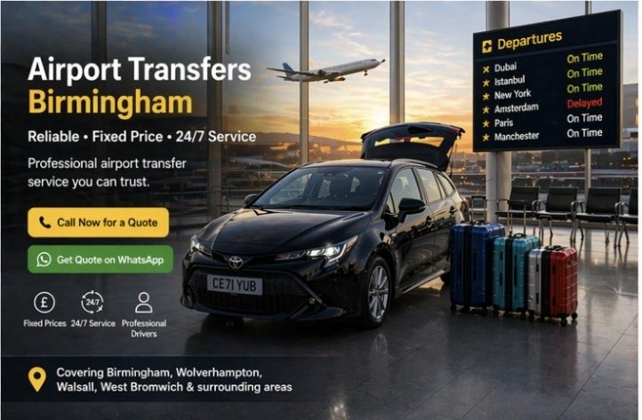 Reliable airport transfers across Birmingham and the West Midlands.
